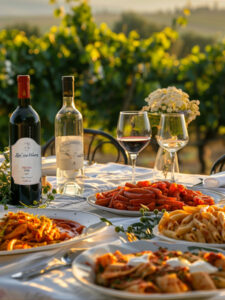תפריט מזטים מוקפד, קינוחים טעימים, וכוסות יין מהארץ ומהעולם.